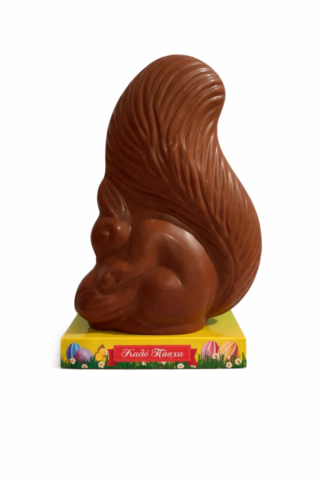 Πασχαλινά ζωάκια από Κουβερτούρα υγείας ή γάλακτος με σελοφάν σε χάρτινη βάση.